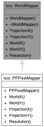 This class can be used to create a mapping between a projection coordinate system and a different coordinate system. Simple examples of this would be a mapping between projection x/y's to cube line/samples or a mapping between projection x/y's and paper x/y's in inches. The class is pure virtual and therefore should never be directly instantiated. Remember the basic premise is to use this class to create a new class which converts coordinates from one system to another (inches to meters and back, meters to pixels and back, etc).